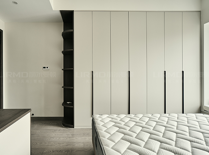 一整排柜子視覺效果美觀且大氣,柜子左側(cè)做一個(gè)圓弧角處理,可以擺放綠植等物品,