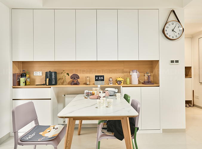 整體的墻柜很好的利用空間,收納大大的提升,無拉手設(shè)計,更顯極簡。
