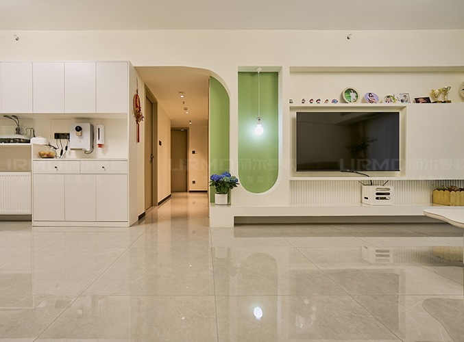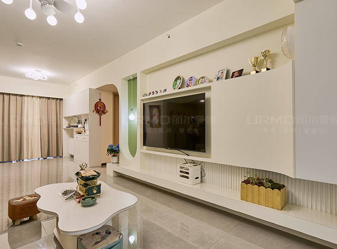 電視墻做石膏內(nèi)嵌,開放空間擺設(shè)更隨心。