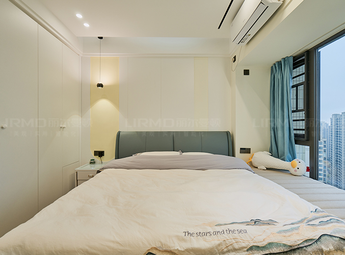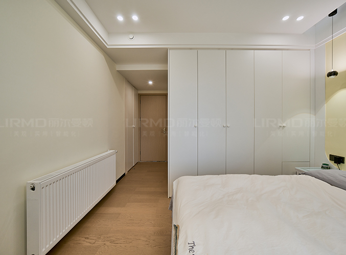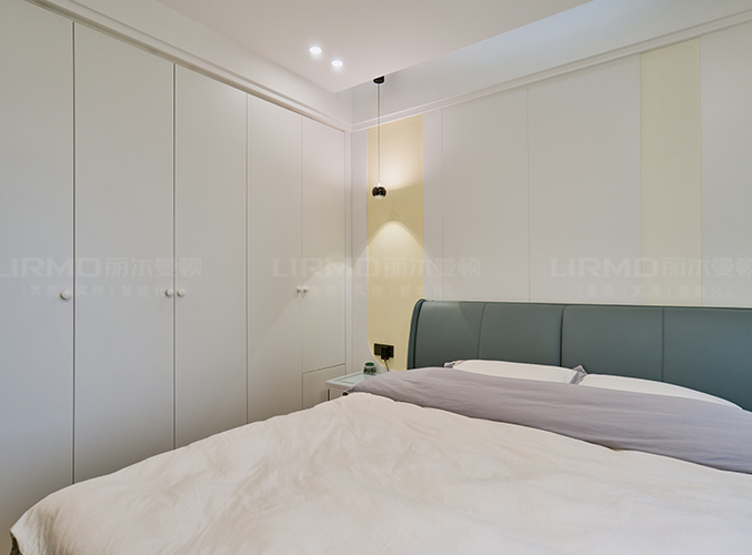 實木柜體搭配PET膚感柜門,一門到頂,無主燈設(shè)計營造空間增次,,整體顏色統(tǒng)一,美觀且大氣。