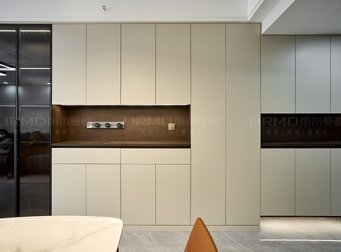 實木柜體搭配PET膚感柜門,質感超不錯,多組一門到頂柜子設計更是實現收納需求,
