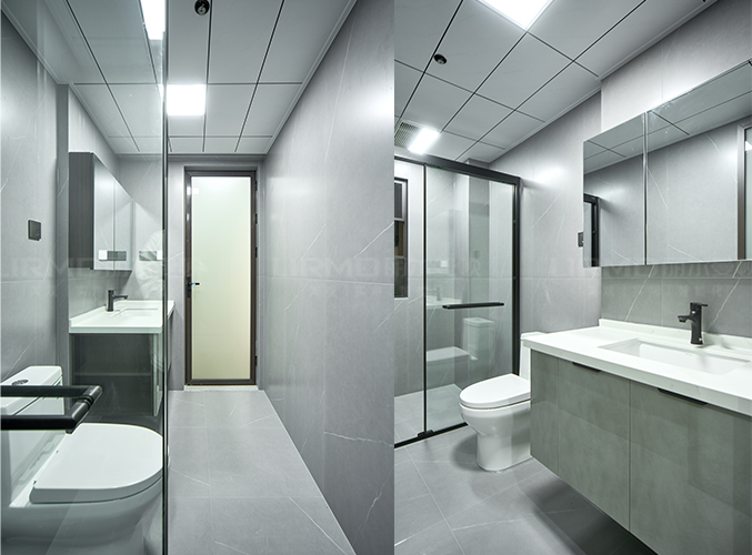 整屋通鋪瓷磚,盡顯大氣,電視背景墻采用整面墻設計,整體效果不顯沉悶,