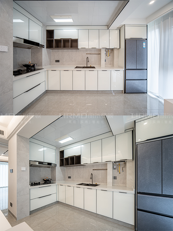 全屋高端定制:柜體板材18厚杉木實芯板,柜門有pet膚感、高光、超晶、五金使用原裝進(jìn)口奧地利百隆五金