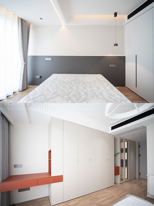 全屋高端定制:柜體板材18厚杉木實芯板,柜門有pet膚感、高光、超晶、五金使用原裝進(jìn)口奧地利百隆五金