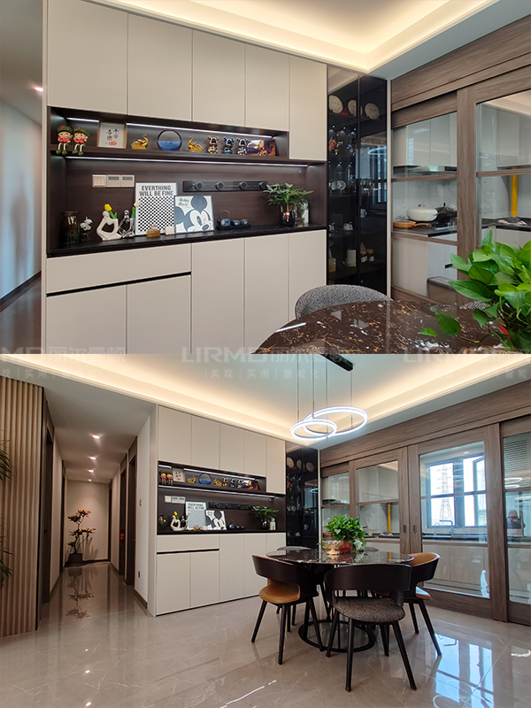 柜體采用18厚杉木芯板,柜門采用歐松板PET膚感柜門,