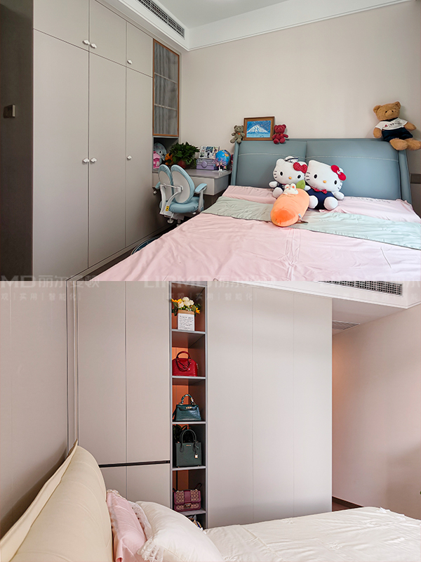 全房柜體打造較多,利用部分穿插設計、跳色設計,