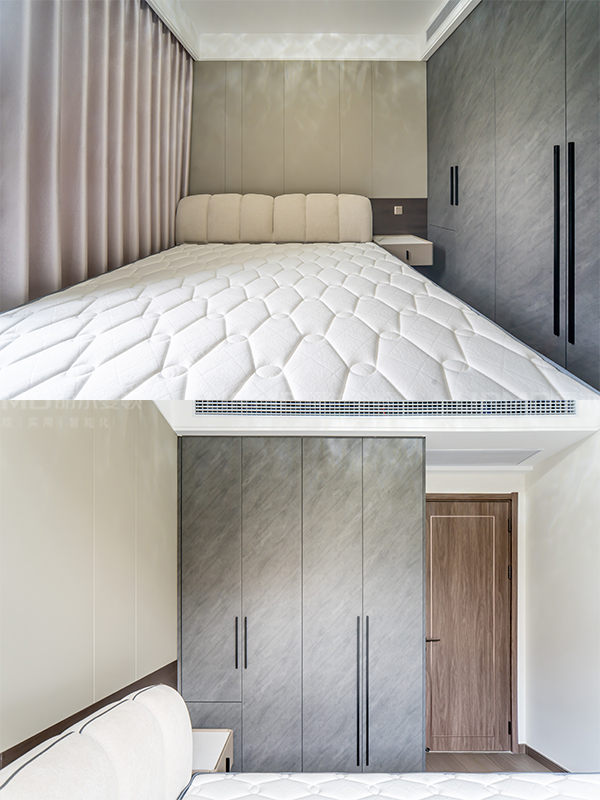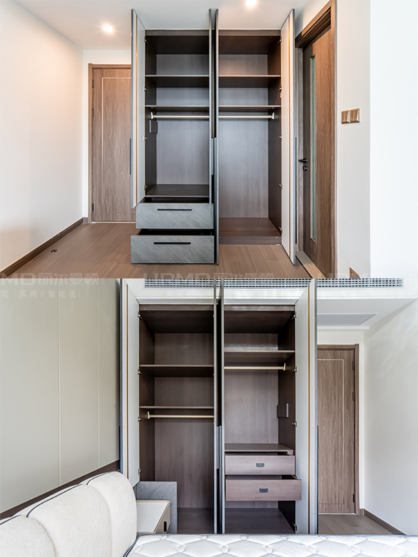 柜體采用18厚杉木芯板,柜門(mén)采用歐松板PET膚感柜門(mén),