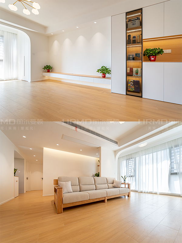 雙眼皮吊頂搭配暖色系氛圍燈,打造溫馨簡約的舒適環境