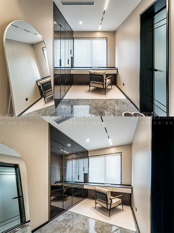 門墻柜一體化設計,打造全屋同款同色同造型,木飾面的融入,整體性真的絕