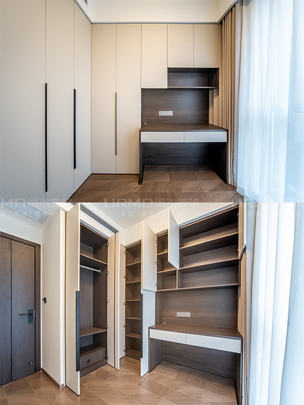 長沙靠譜裝修公司,長沙靠譜全屋定制,臥室衣柜加梳妝臺,現代風,