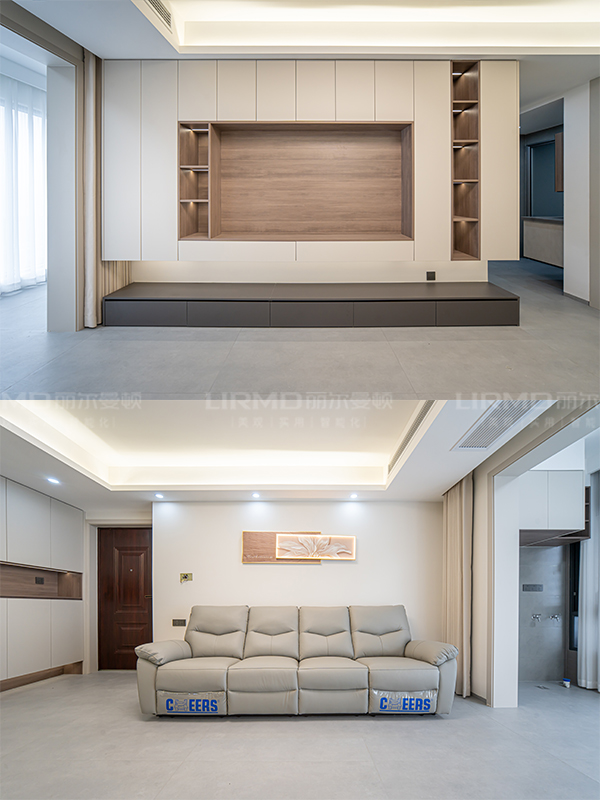 門墻柜一體化設(shè)計,打造全屋同款同色同造型,整體色調(diào)統(tǒng)一