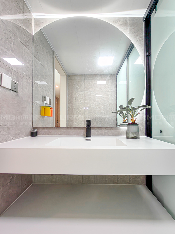 ?將地面瓷磚更換為素色柔光磚,全屋定制柜、護墻板及超高門做啞灰橡局部穿插煙熏尤加利做跳色,打造現代輕奢風。