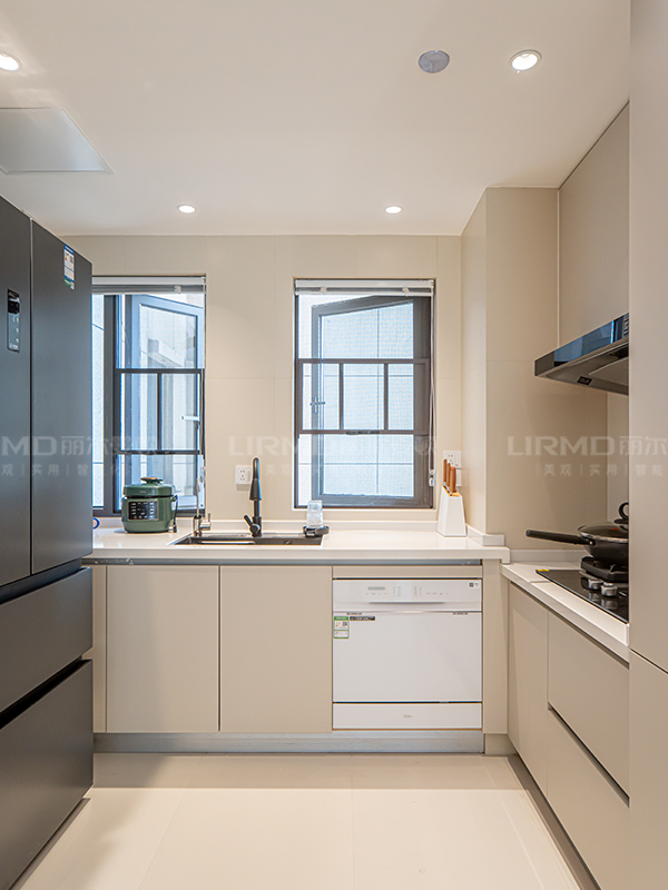 廚房改成半開放式設計,連接入戶玄關設計,整體更加通透、有層次感