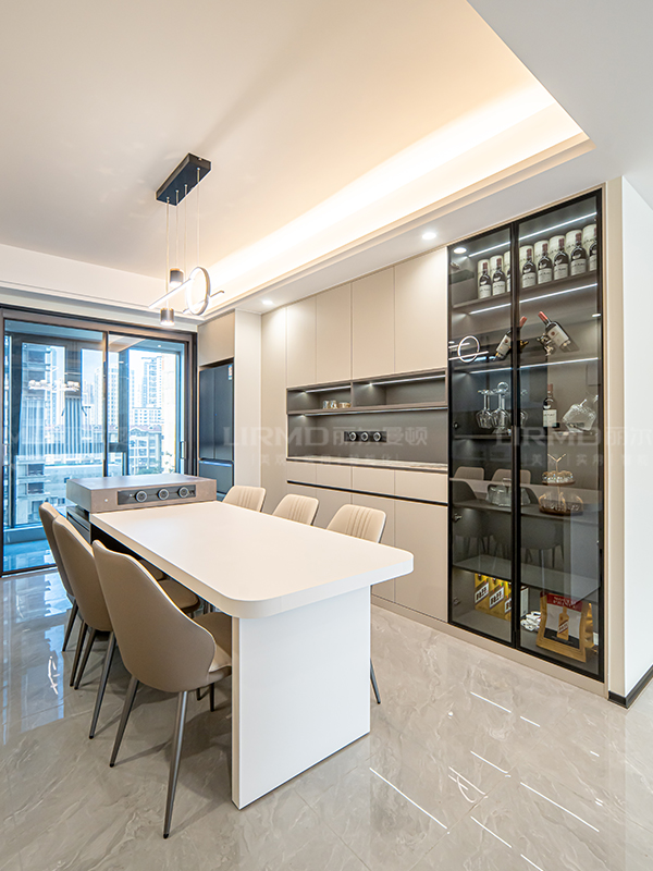 全屋高端定制:柜體板材18厚杉木實芯板,柜門有pet膚感、高光、超晶、五金使用原裝進口奧地利百隆五金
