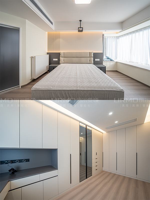 長沙靠譜裝修公司,長沙靠譜全屋定制,臥室衣柜加梳妝臺,現代簡約風,
