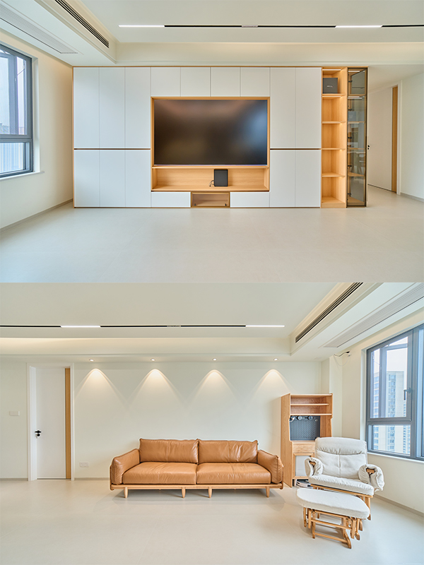 電視背景墻做滿墻設計,滿足收納需求
