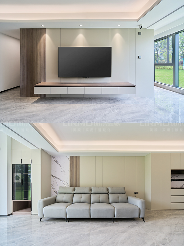 柜.墻.門一體化,從柜到墻再到門的連貫延伸,完美呈現出簡潔大氣的空間感
