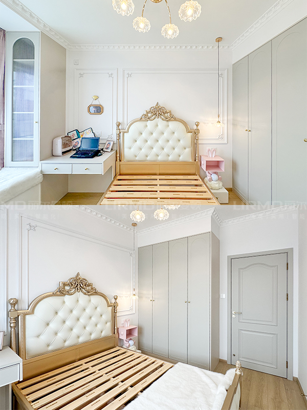 長沙靠譜裝修公司,長沙靠譜全屋定制,臥室衣柜加梳妝臺,法式奶油風,