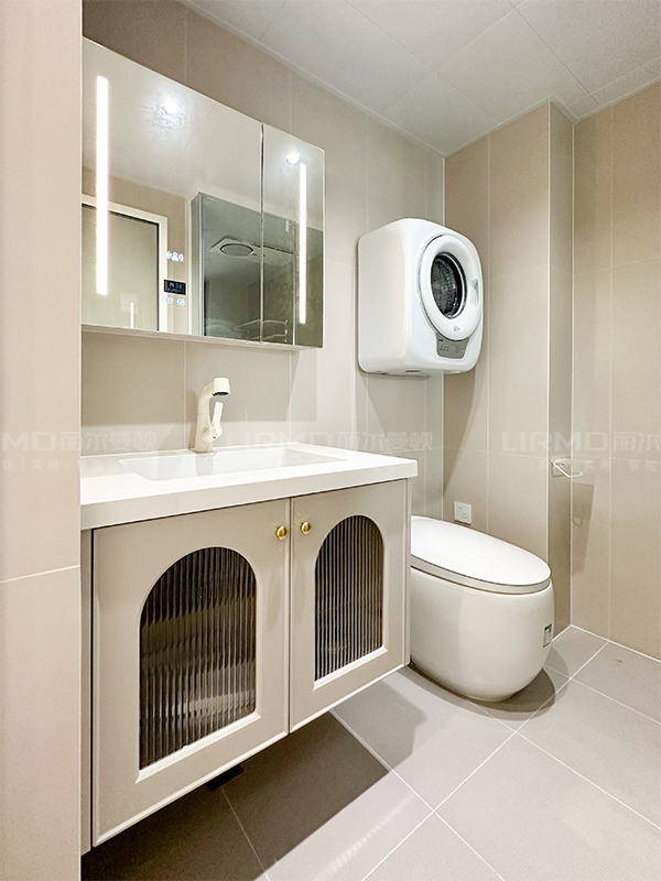 整體是法式裝修風格,采用拱形門板造型以及玻璃門,通過燈帶的襯托下營造出法式的浪漫與唯美
