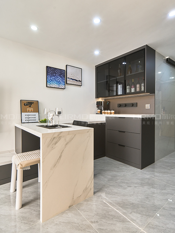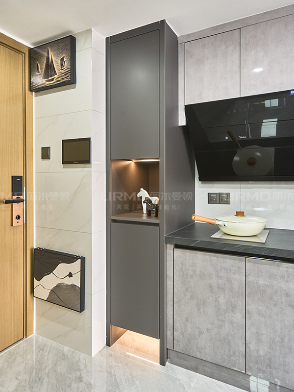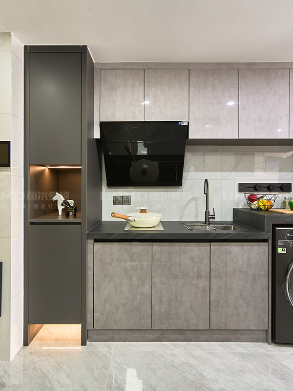 配色簡潔、耐看,選用的濟州灰雙飾面板材和淺色的軟裝相互照應