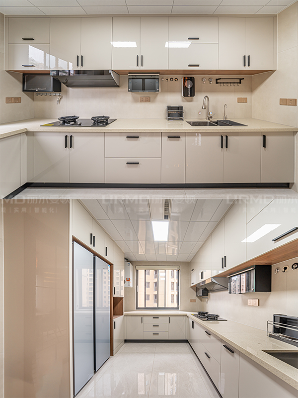 極簡 U 型櫥柜,視覺效果拉滿,區域設計考慮到了使用使用動線,讓廚房使用更加便利
