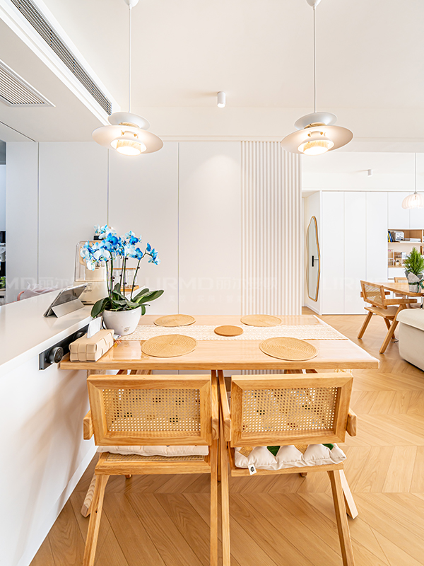 開放式書房+餐廳,增加寬廣度和互動性,整個公共區域全開放,視覺效果更通透