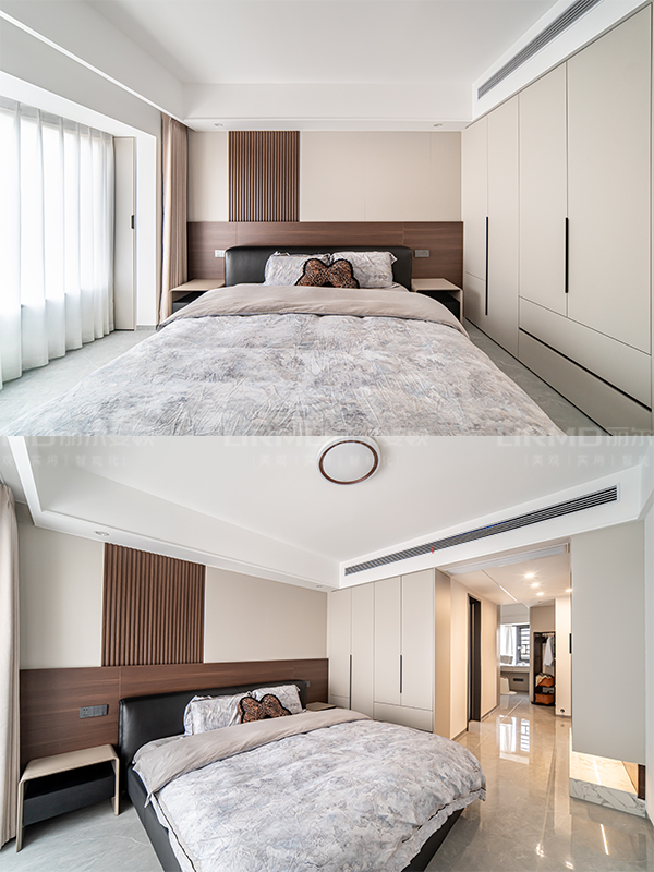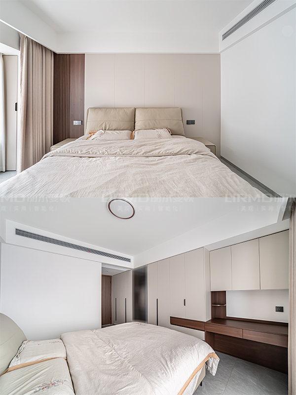 隱形設(shè)計:所有門套、踢腳線做極簡收口,連空調(diào)風(fēng)口都定制同色格柵,強迫癥狂喜