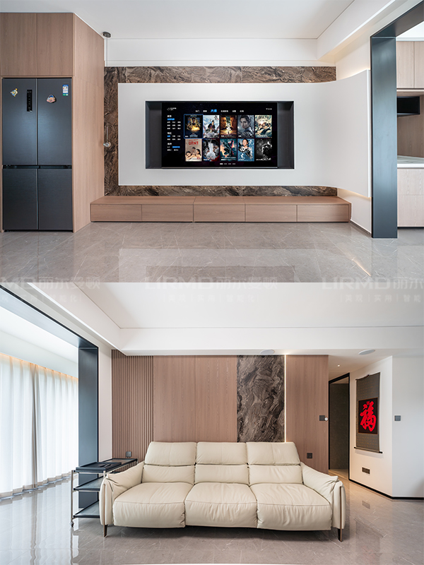開放式客餐廳:懸浮電視柜+通頂餐邊柜