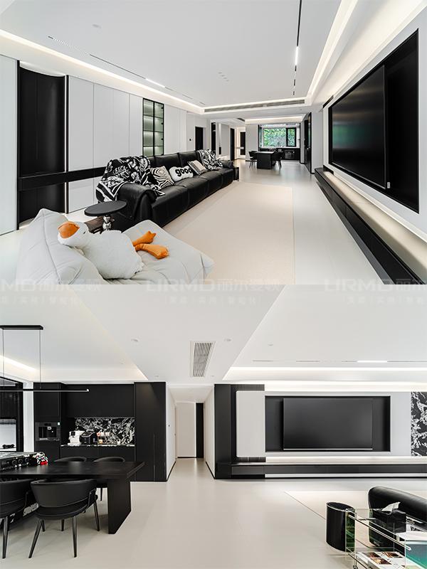 搭配各類軟裝突出個(gè)性質(zhì)感。在客廳大平層明暗區(qū)分與虛實(shí)結(jié)合的環(huán)境中,以求達(dá)到自由輕松愜意,