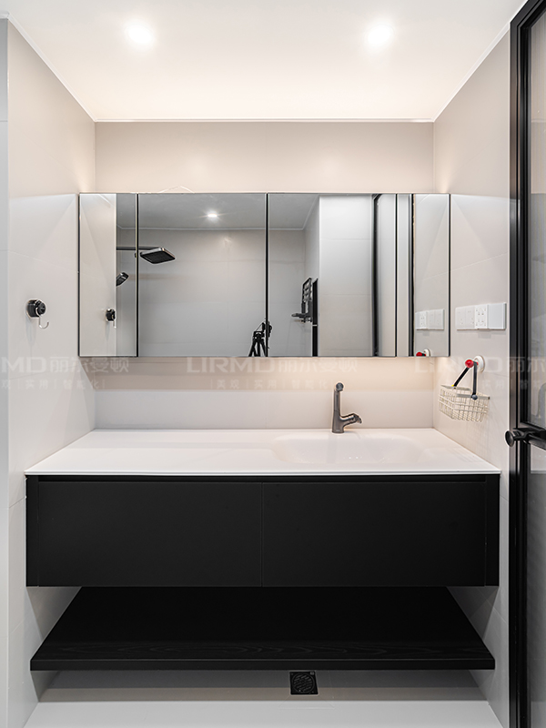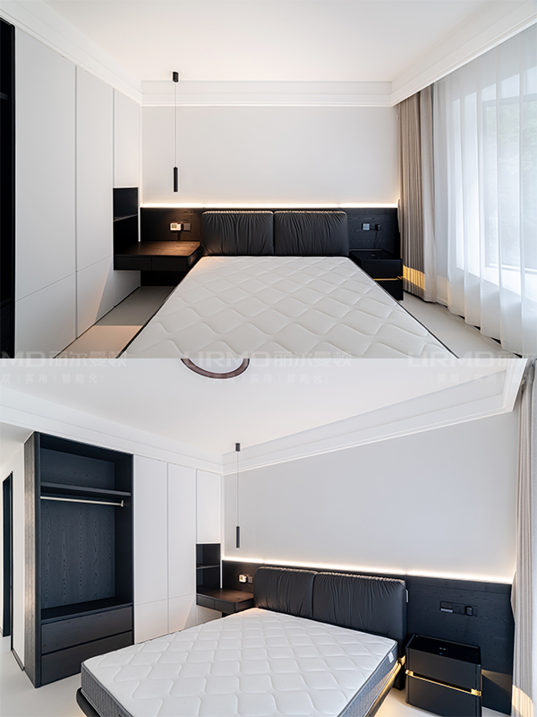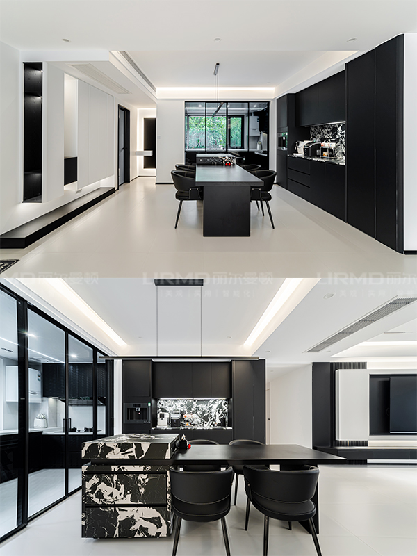 現(xiàn)代黑白灰搭配些許跳色,既顯個(gè)性又不張揚(yáng)。適當(dāng)使用膚感純黑色系突出硬裝中的層次感,